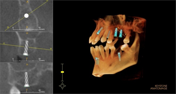 W celu dokładnego zaplanowania zabiegu implantologicznego stosujemy trójwymiarową (3D) wizualizację leczenia przy użyciu programu DTX Studio Implant. Dzięki temu narzędziu możemy wirtualnie umieścić implanty i stworzyć precyzyjny szablon implantologiczny, co zapewnia idealne umiejscowienie implantów i najlepszy efekt estetyczny oraz kliniczny. Planowanie 3D jest oparte na wynikach badania tomografii komputerowej CBCT, które wykonywane jest w naszej Pracowni Tomografii Komputerowej CBCT, co pozwala na jeszcze większą dokładność i bezpieczeństwo zabiegu.